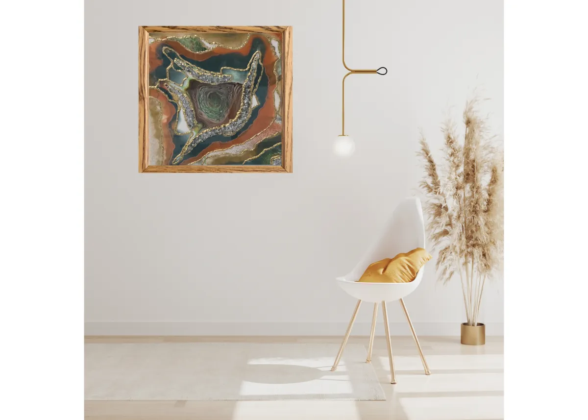 Wood Panel, Epoxy Resin with fire glass